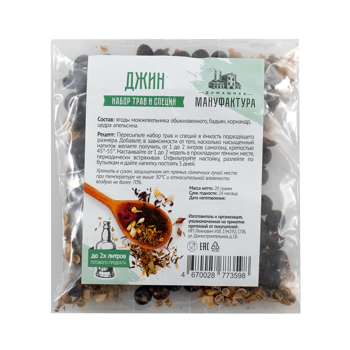 Набор Домашняя Мануфактура для приготовления настойки "Джин"