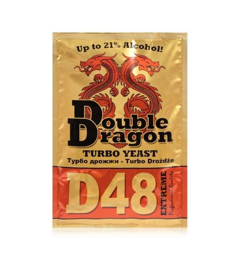 Double Dragon D48 - эффективный дрожжевой штамм, обеспечивающий интенсивное брожение сырья за 48 часов, от Великобританского производителя дрожжей - компании Double Dragon! Дрожжи Double Dragon D48 являются новинкой на рынке турбо-дрожжей, но за свое короткое время существования они успели заслужить множество положительных отзывов от пользователей. Дабл Драгон Д48 славятся своей универсальностью, способностью бродить на любом сырье, неприхотливостью к температурному режиму и невероятно быстрыми и качественными результатами брожения. Именно поэтому turbo-yeast Double Dragon D48 имеют приставку «48» означающую способность сбраживания сырья за 48 часа при соблюдении инструкции!