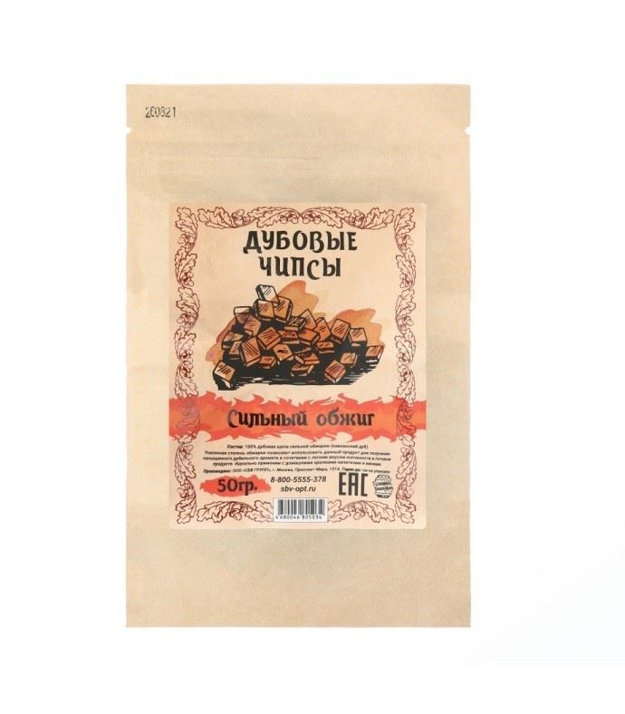 Дубовая щепа сильного обжига - полностью натуральный, экологически чистый продукт. Обжиг производится на специальном оборудовании, где четко регламентируется температура и время обжига. Никакие дополнительные вещества, увеличивающие дубовый аромат или повышающие экстрактивность веществ, не используются при производстве. Для производства дубовых чипс и дальнейшего их сильного запекания применяется исключительно нижняя часть ствола дуба, возрастом 90-100 лет.