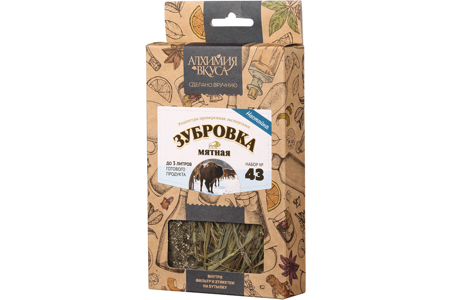 Набор для приготовления настойки «Зубровка мятная" – это мягкий, слегка жгущий вкус и невероятный аромат зубровки, напоминающий солнечный летний деревенский день, дополненные легкими хвойными нотами и сухим послевкусием.
