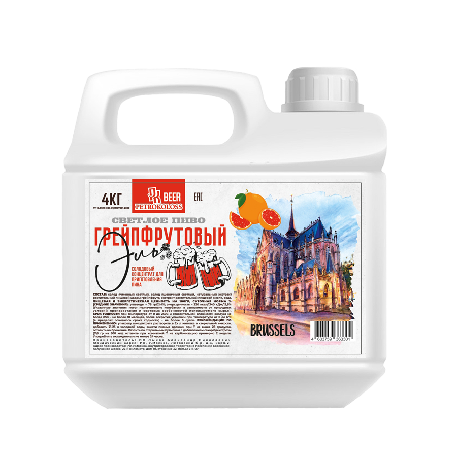 С солодовым экстрактом для пива "Грейпфрутовый Эль" вы можете сделать отличное фруктовое пиво у себя дома. Солодовый концентрат для пива изготовлен исключительно из натуральных ингредиентов и не содержит посторонних сахаров.