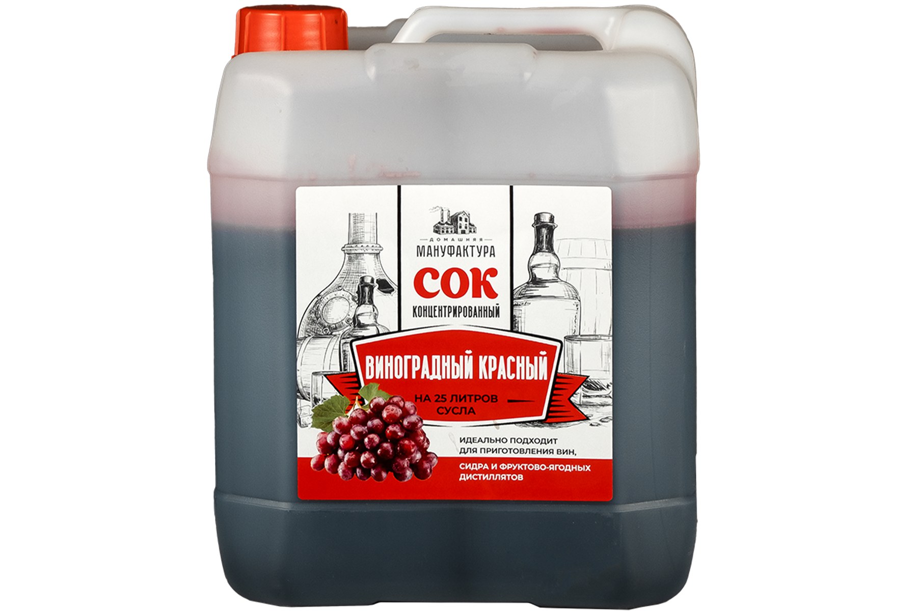 Натуральный концентрированный сок "красный виноград". На 25 литров сусла. Идеально подходит для приготовления вин, сидра и фруктово-ягодных дистиллятов.