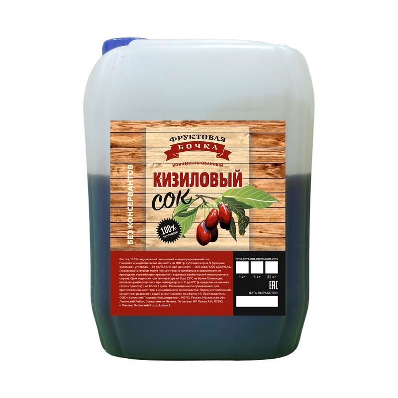 Натуральный концентрированный кизиловый сок. На 25 литров сусла. Идеально подходит для приготовления вин, сидра и фруктово-ягодных дистиллятов.