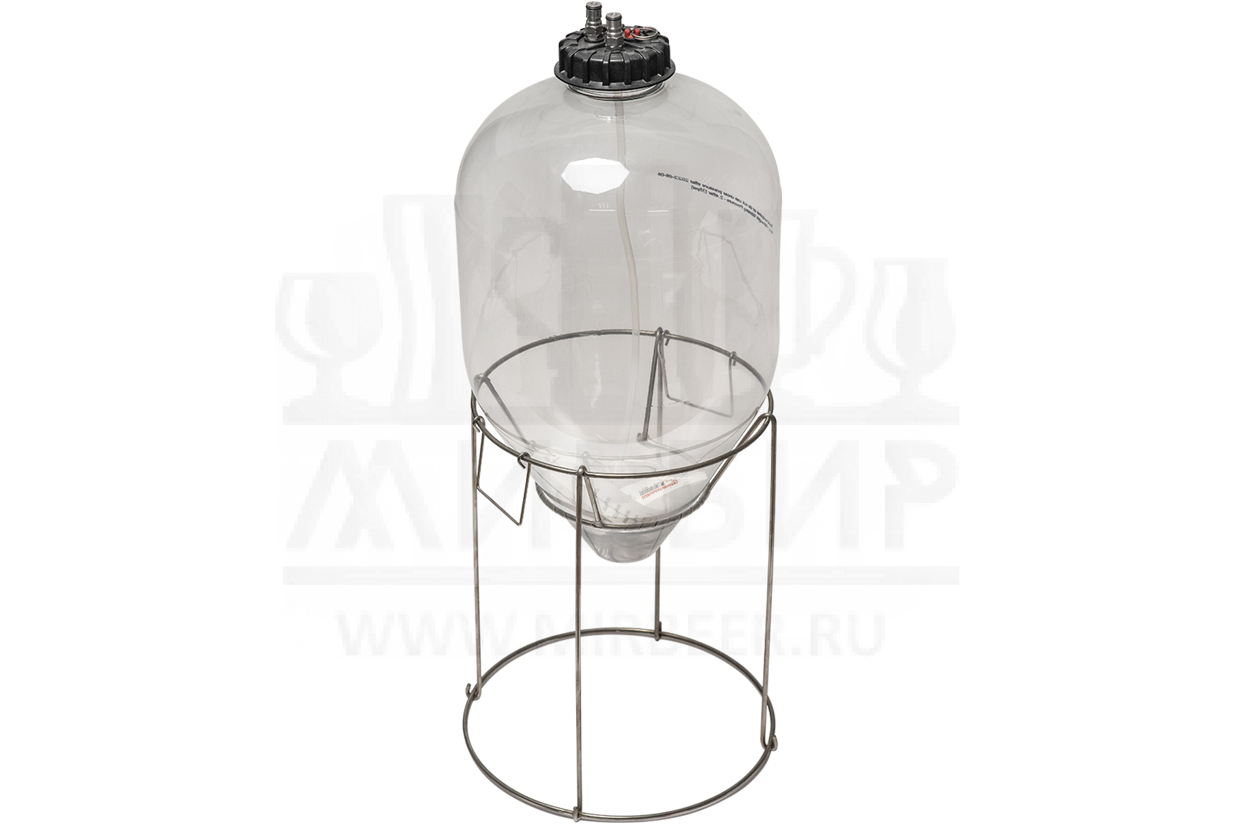 Ферментер Изготовлен из бутылочного ПЭТ-пластика без бисфенола А, сам сосуд рассчитан на давление в 5 бар, что делает его самым безопасным баком такого размера для ферментации под давлением. Ферментация под давлением имеет свои преимущества: К ним относятся низкое образование эфиров, меньшая зависимость от температурного режима, бескислородная ферментация. По окончанию ферментации, пиво остается частично карбонизированным.