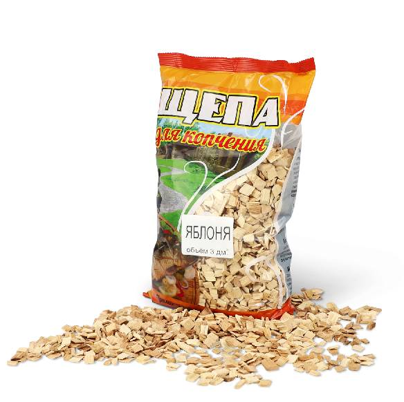 Яблоневая щепа прекрасно подходит для обработки мяса домашних животных и дичи, а также морепродуктов, особенно при добавлении пряностей. Древесина яблони обладает высокой влажностью и при копчении дает большой объем насыщенного дыма, что позволяет насытить блюда очень ярким привкусом и ароматом фруктов. При копчении на яблоневой щепе продукты покрываются золотистой корочкой.
